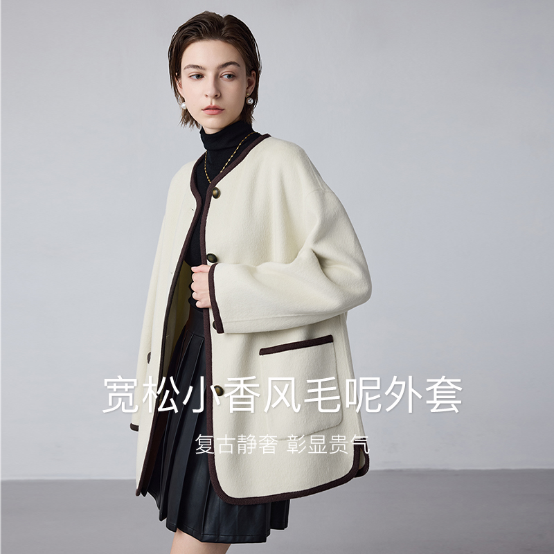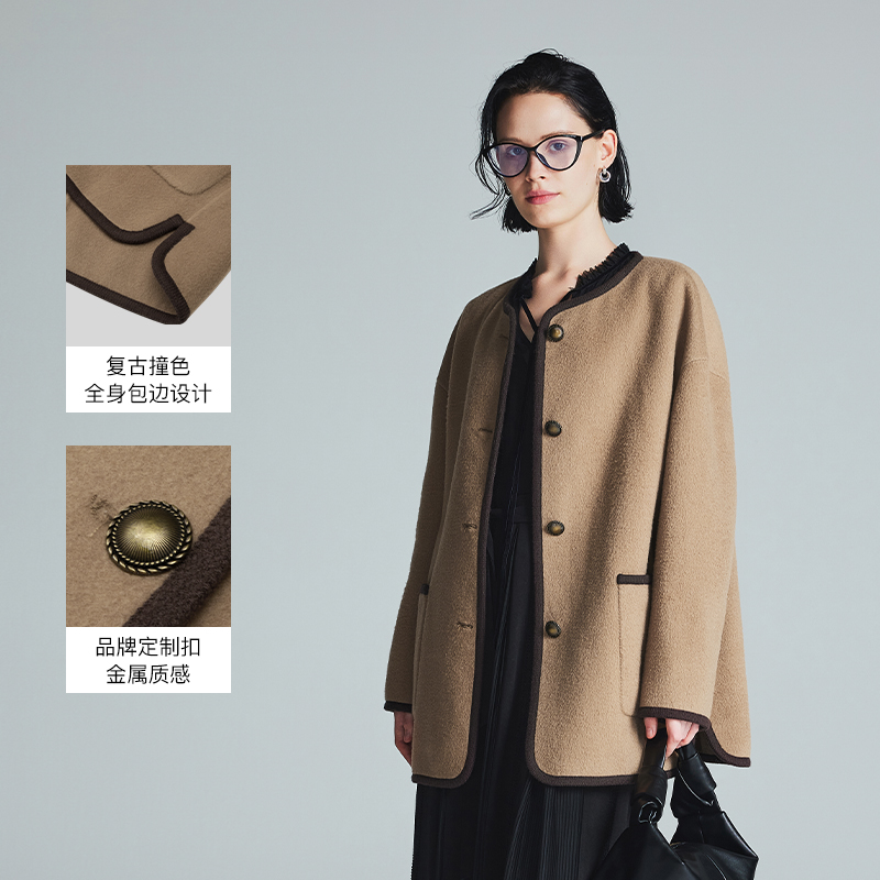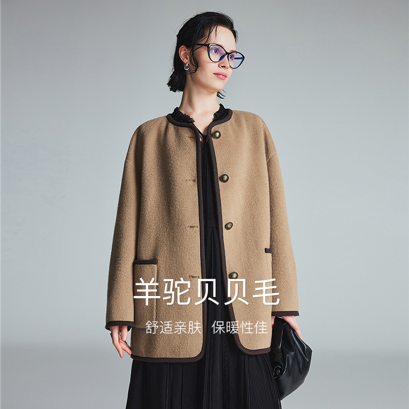 圆领大衣女小个子气质毛呢外套 高端羊毛双面呢短款 2025年春季 新款