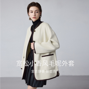 气质优雅百搭通勤外套 新款 秋水伊人宽松西装 领毛呢大衣女2025冬季