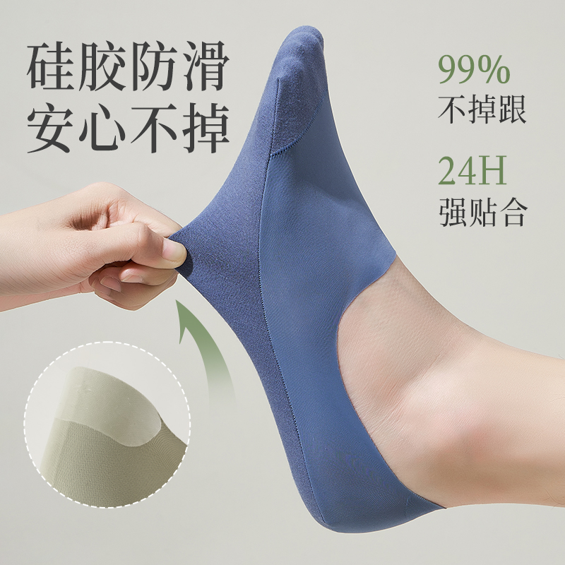船袜男夏季 防滑不掉跟吸汗棉质底抗菌冰丝浅口防顶破隐形袜子 薄款