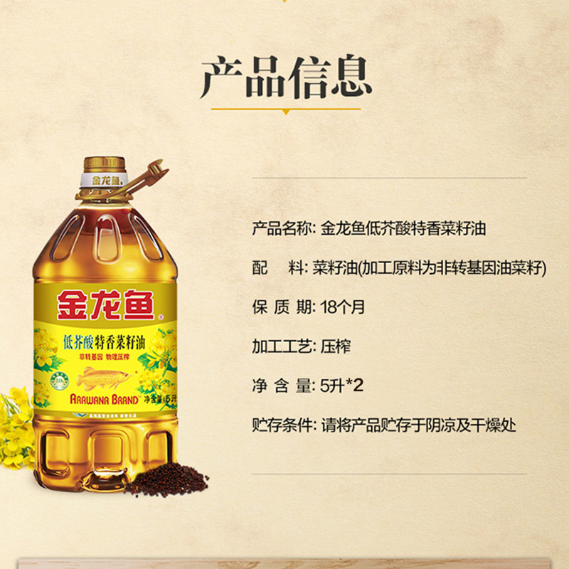 2桶低芥酸非转物理压榨 金龙鱼特香菜籽油菜油5L 超级桶
