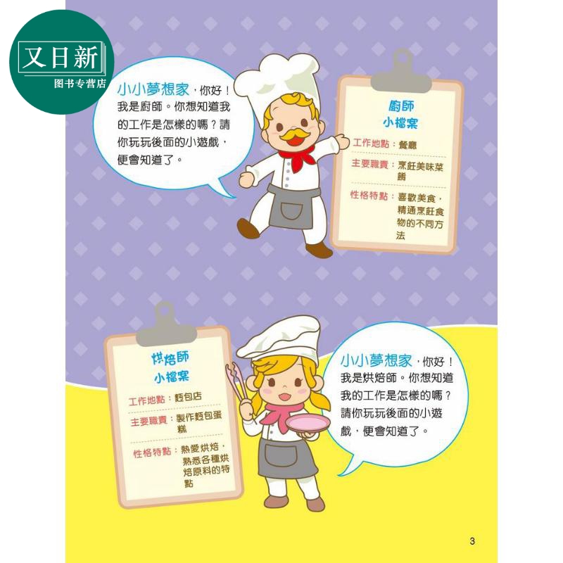活动与玩具书 港台原版 儿童绘本图画书 精品童书儿童读物 又日新 小小梦想家贴纸游戏书 新雅文化出版 厨师和烘焙师