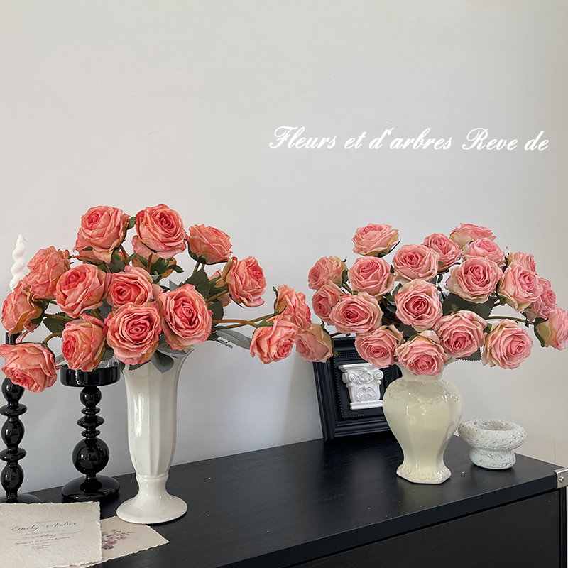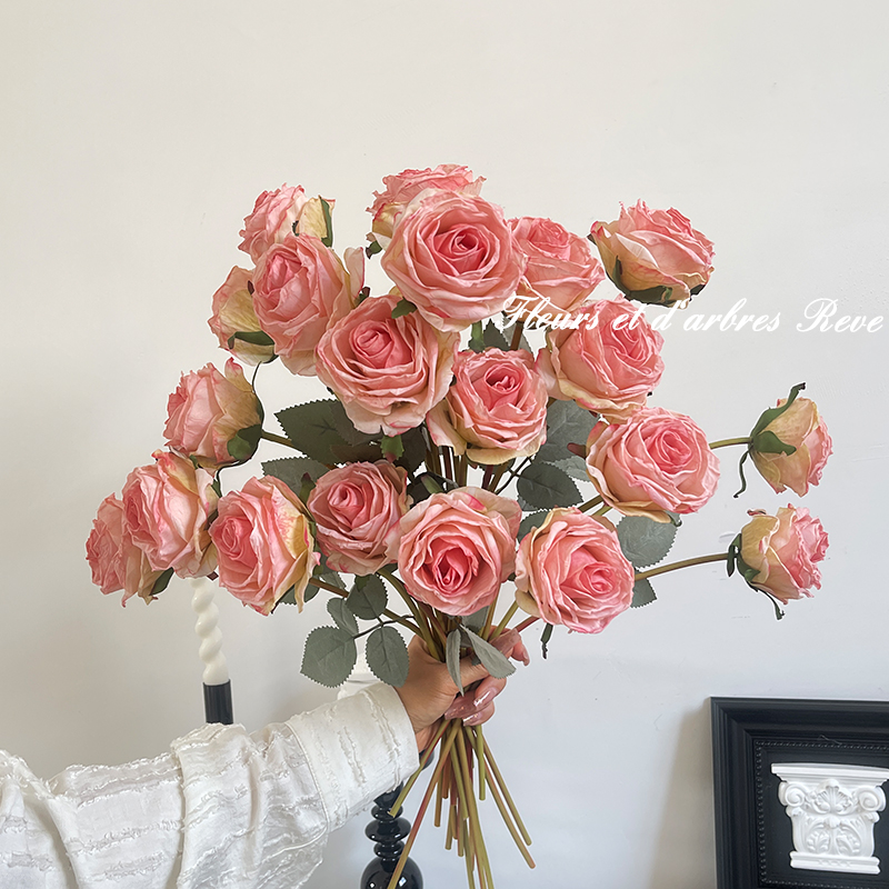 刘亦菲同款 莫奈花园高级感焦边玫瑰花仿真花假花餐桌手捧花束 法式