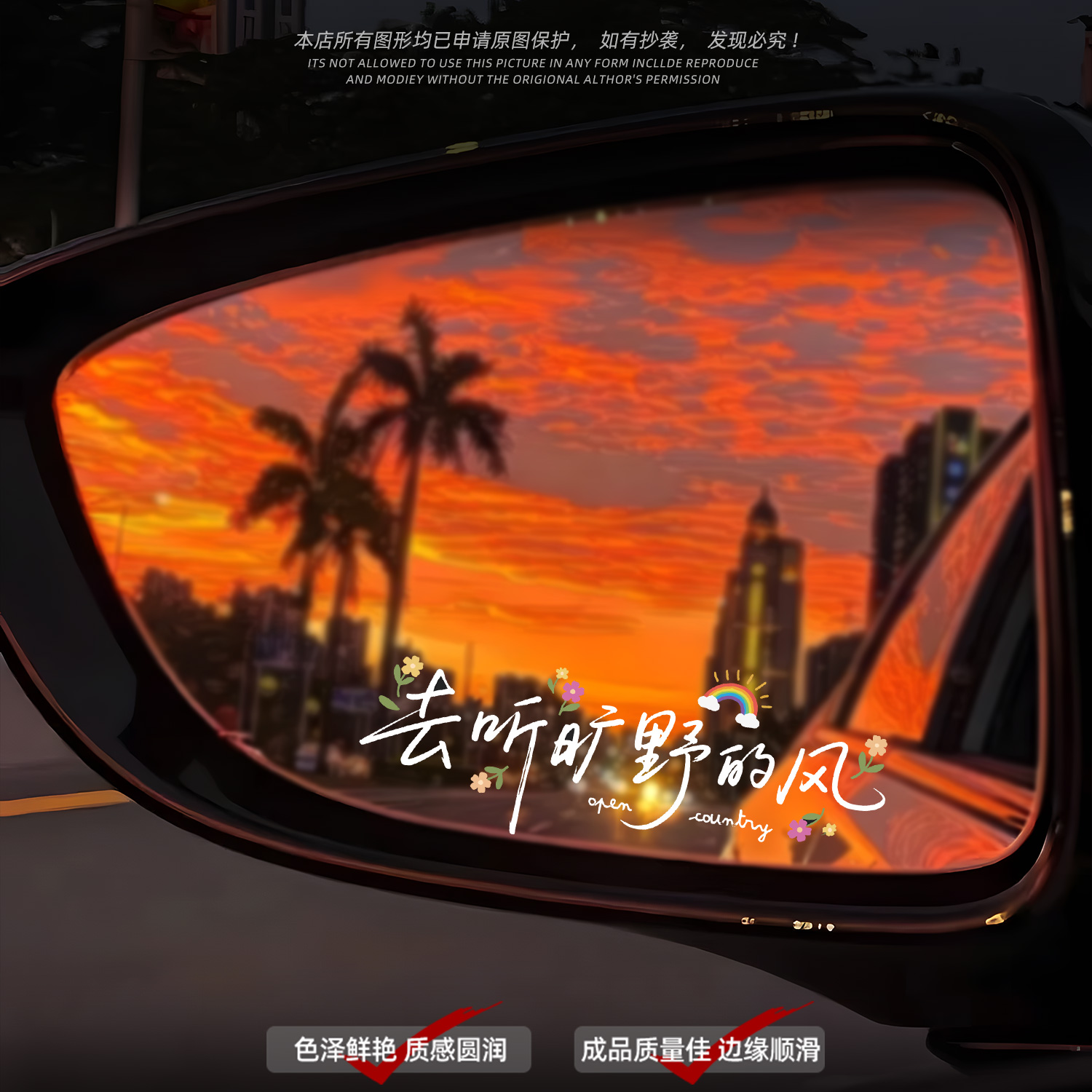 多巴胺氛围感治愈系文字汽车后视镜倒车镜反光镜防水装 饰贴纸