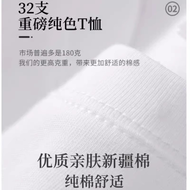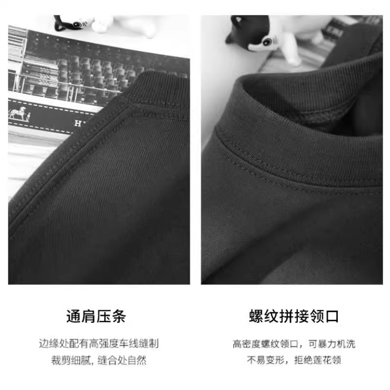 t恤男款 夏季 纯色厚实不透百搭宽松圆领上衣 短袖 300g纯棉重磅美式