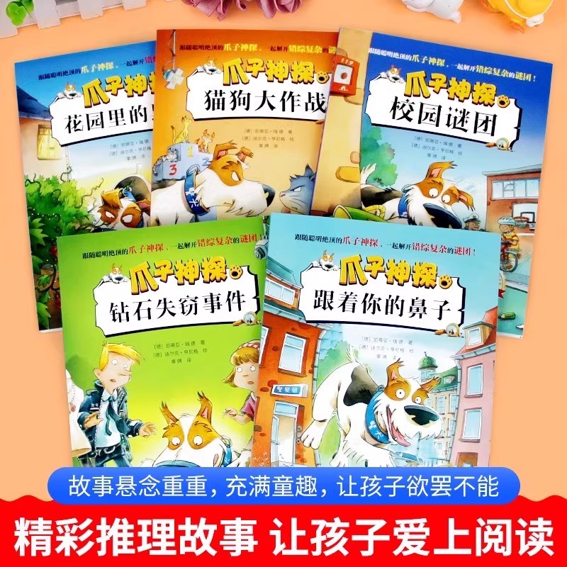 侦探推理儿童读物 小学全套5册爪子神探小学生一二三年级阅读课外书 书目 语文经典 探险冒险悬疑破案书籍故事书小说 彩图注音版