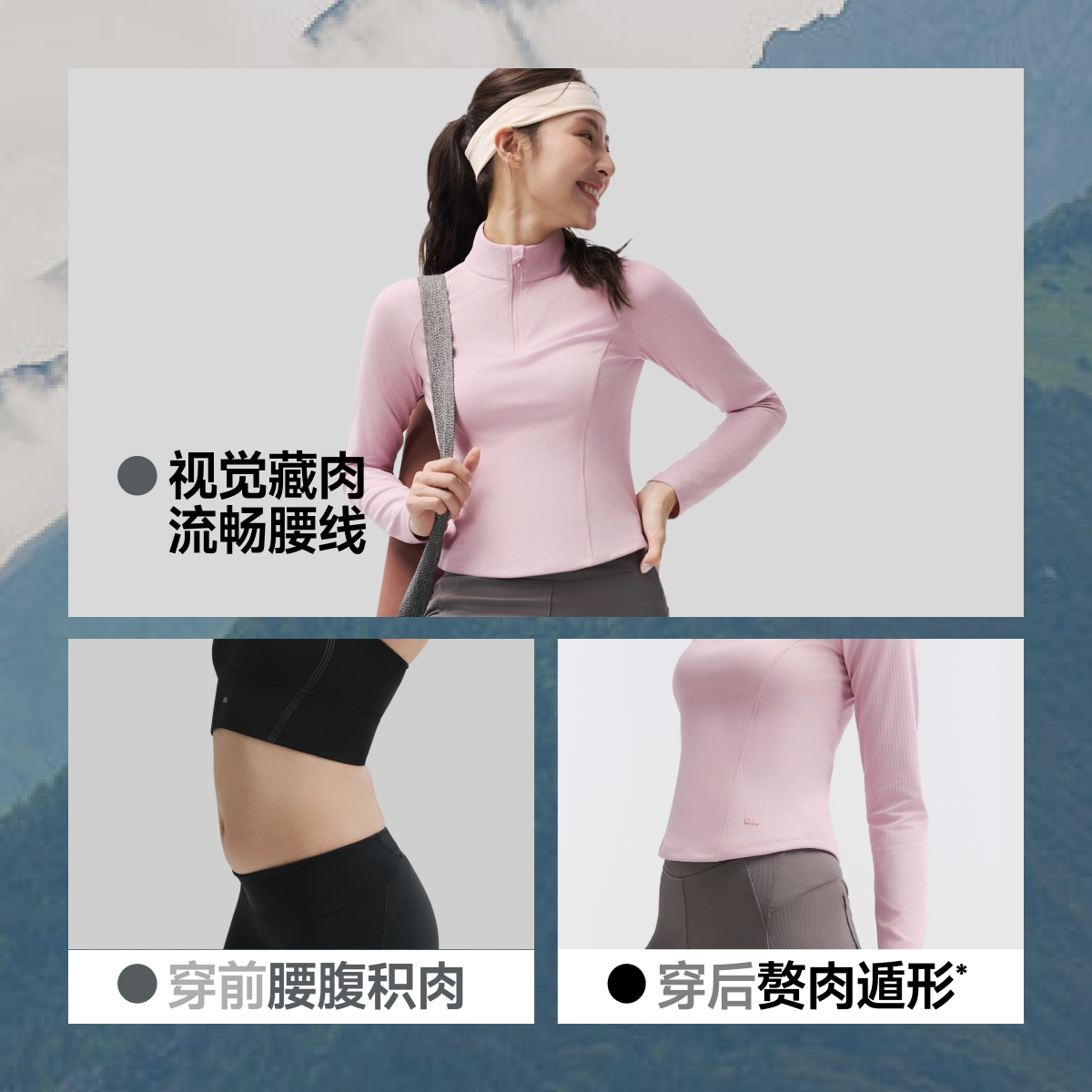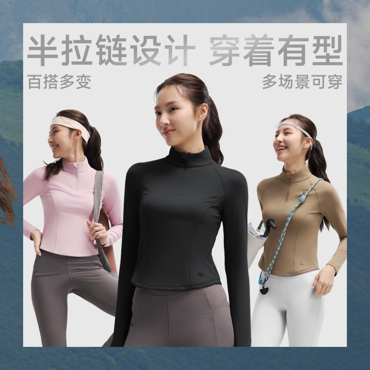 秋打底衫 显瘦速干瑜伽上衣立领户外长袖 t恤女新款 蕉下半拉链修身