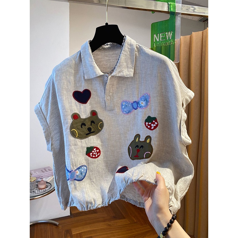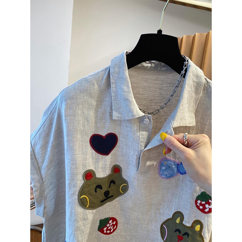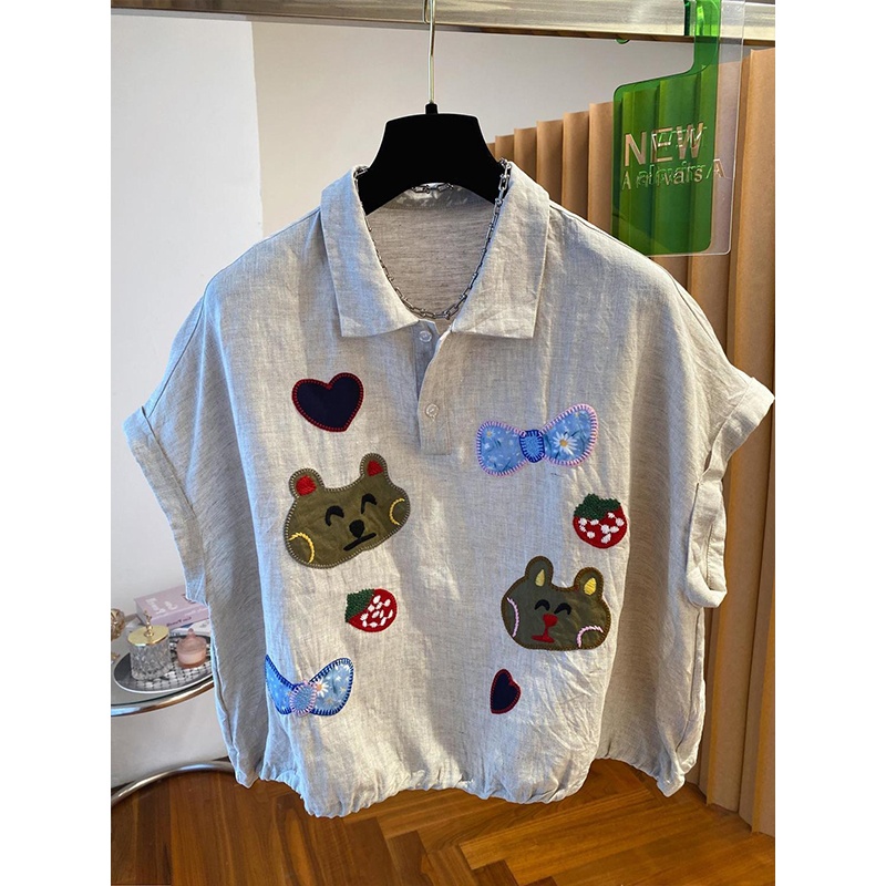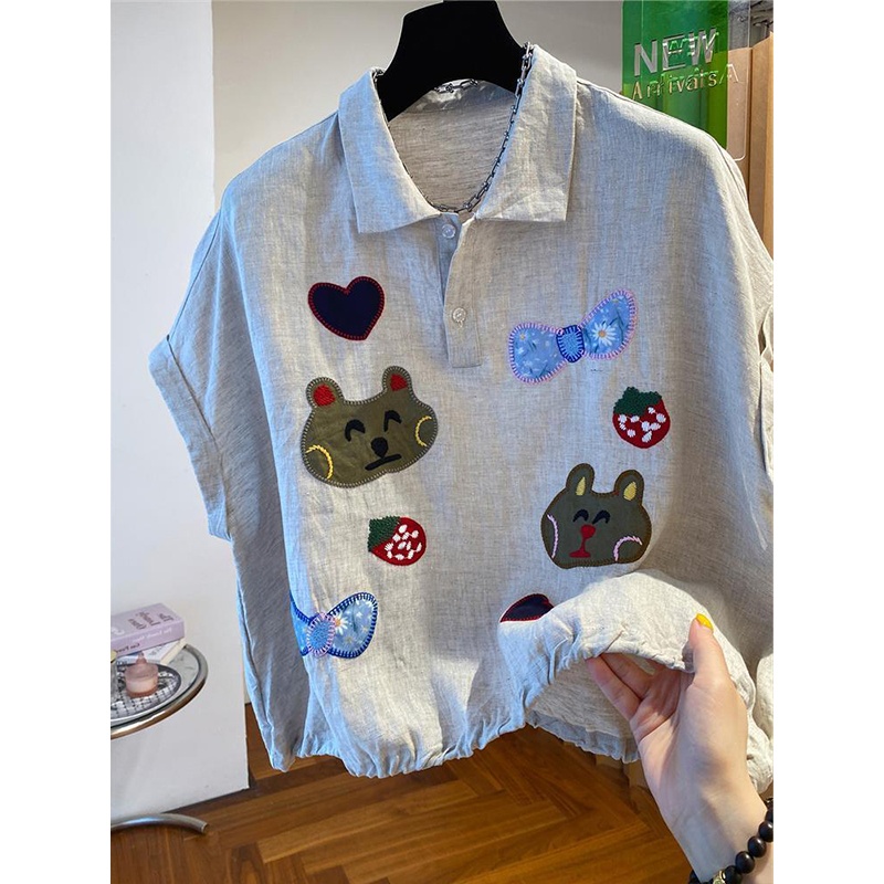 浅灰色卡通衬衣短袖 男女夏季 上衣高级感 今年流行爆款 欧货2025新款
