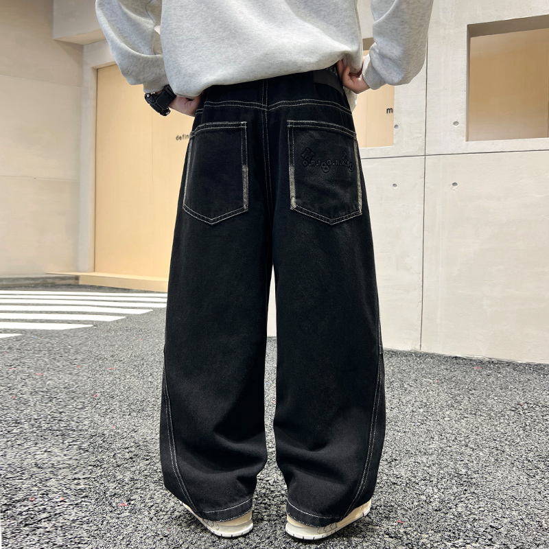 子宽松男大童阔腿裤 男童黑色牛仔裤 儿童早秋裤 2025新款 帅气潮 秋装