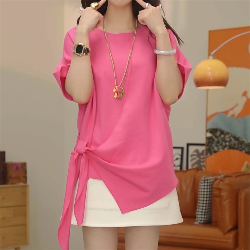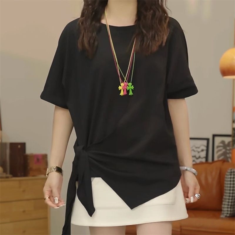 洋气宽松独特漂亮小衫 时尚 2025新款 t恤女夏季 上衣 洋气不规则短袖