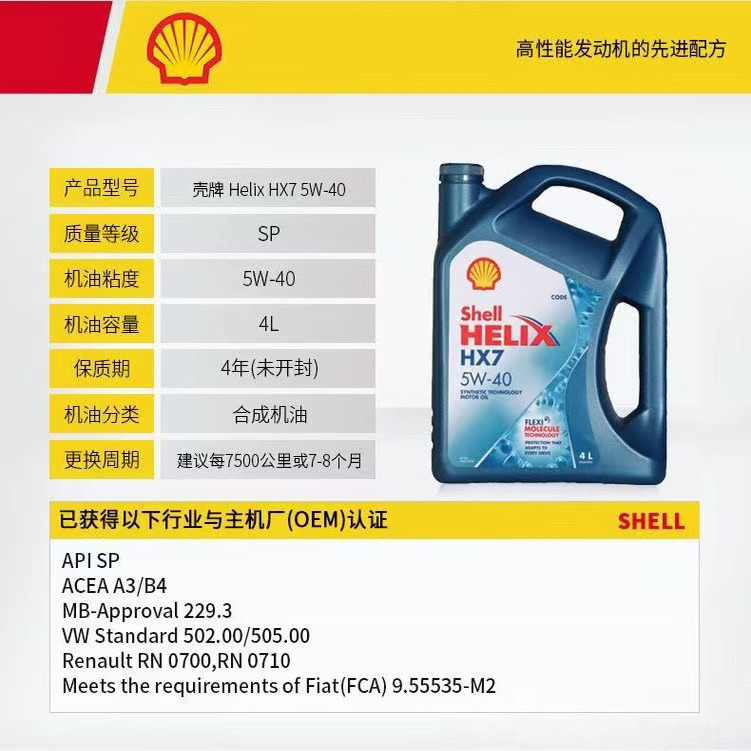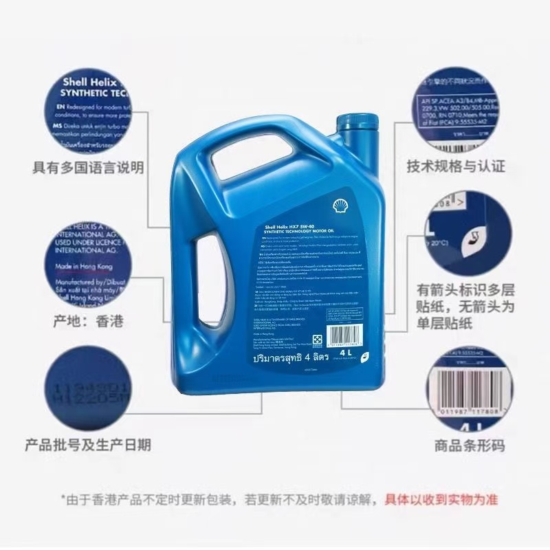 进口 原装 Shell 壳牌喜力HX7蓝壳5W40合成机油汽车发动机润滑油4L