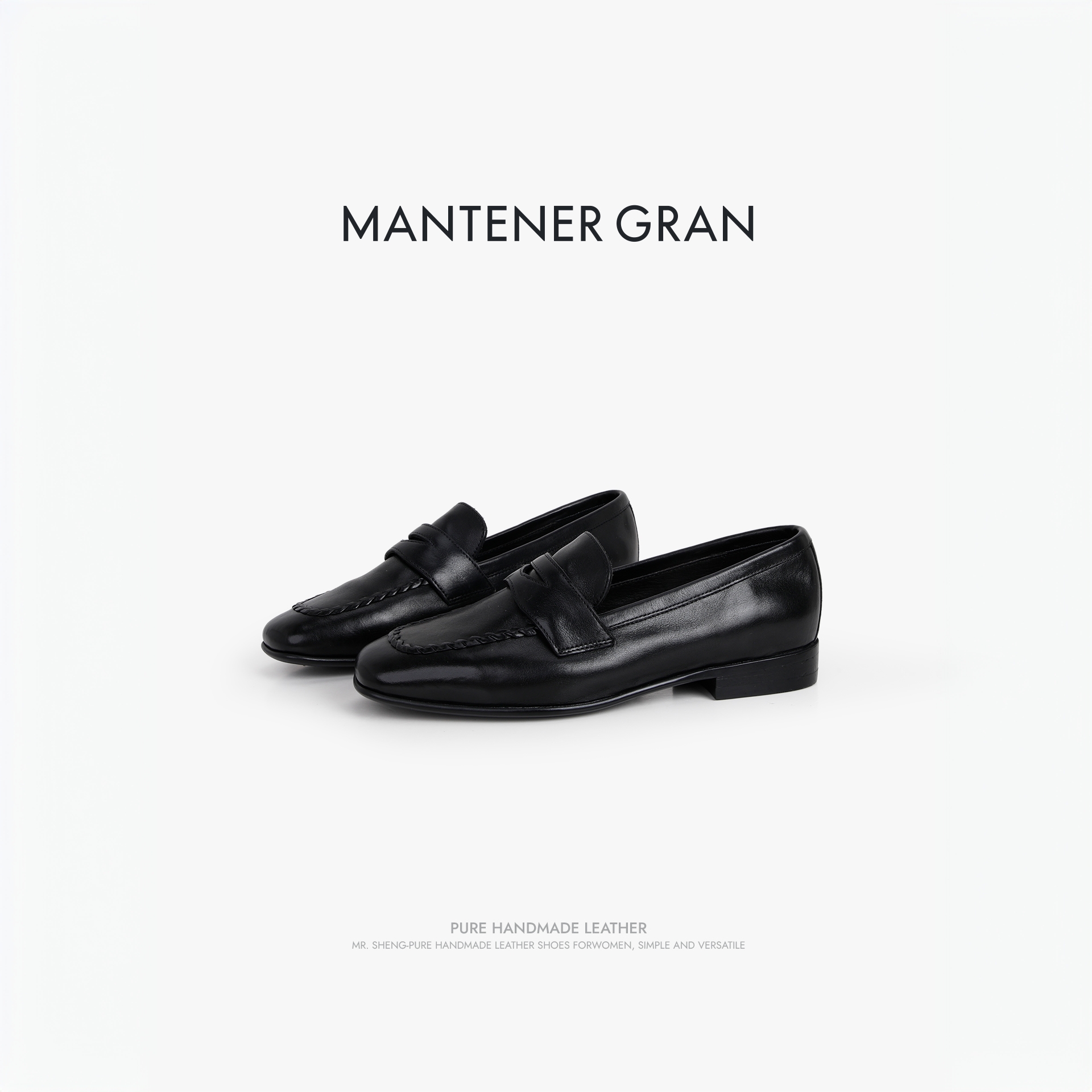 MG女鞋 一脚蹬女士英伦小皮鞋 女乐福鞋 MantenerGran黑色方头单鞋
