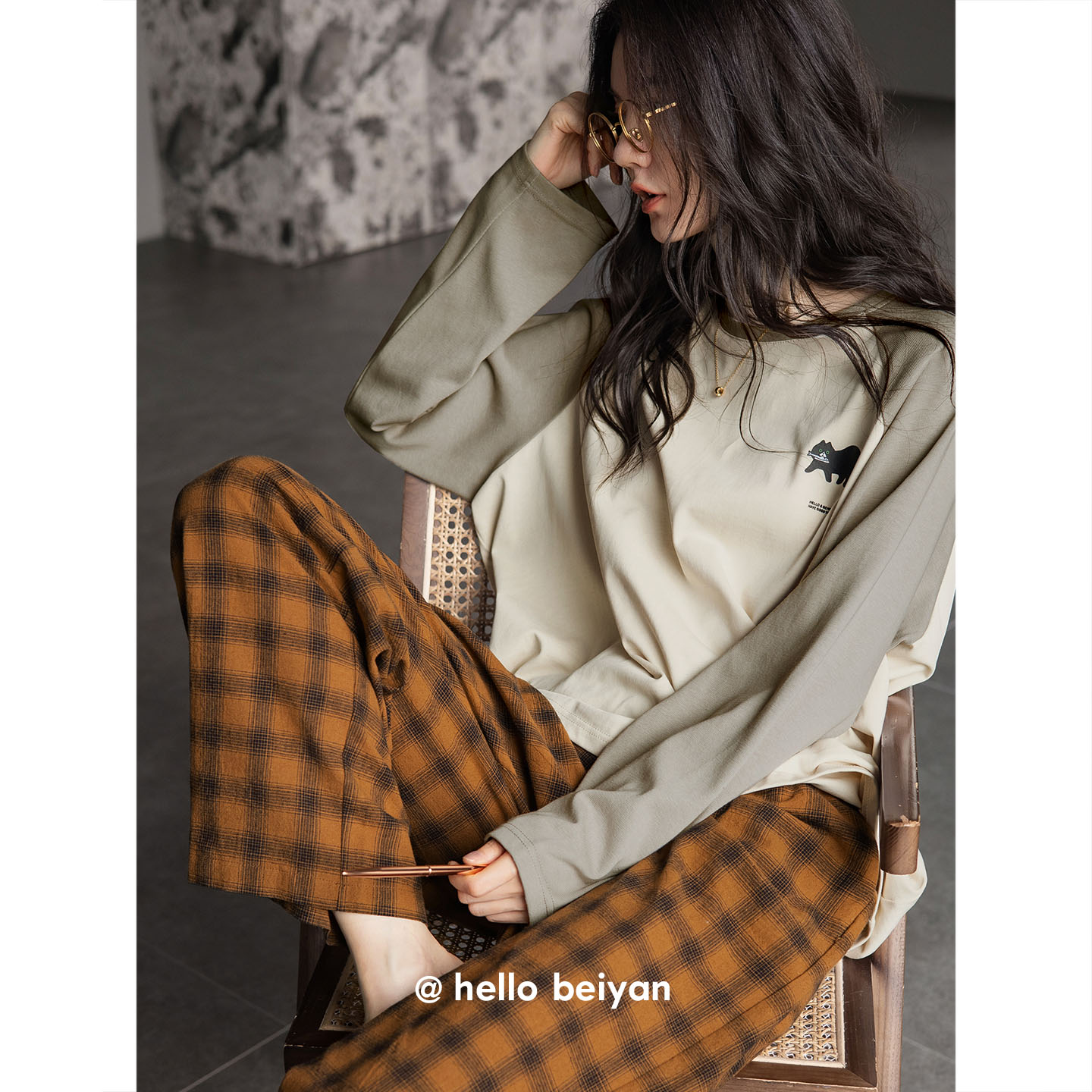 情侣睡衣女春秋季 休闲套装 柔软棉圆领长袖 大码 家居服男士 贝妍新款