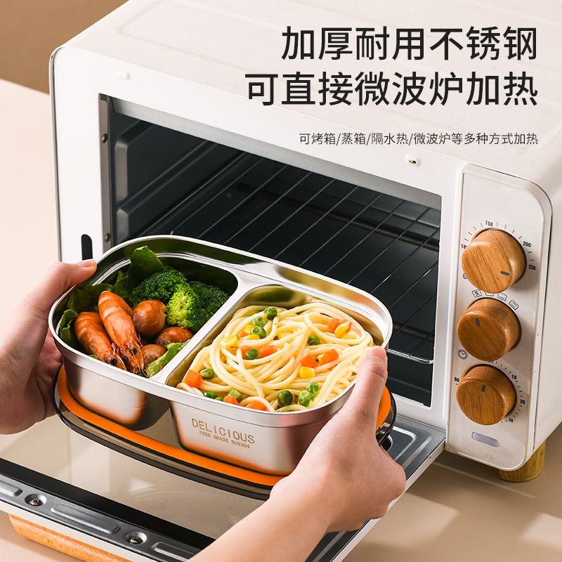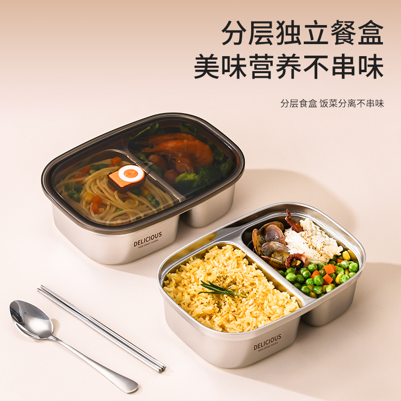 不锈钢保温饭盒上班族微波炉加热专用轻便大容量带饭分格便当餐盒