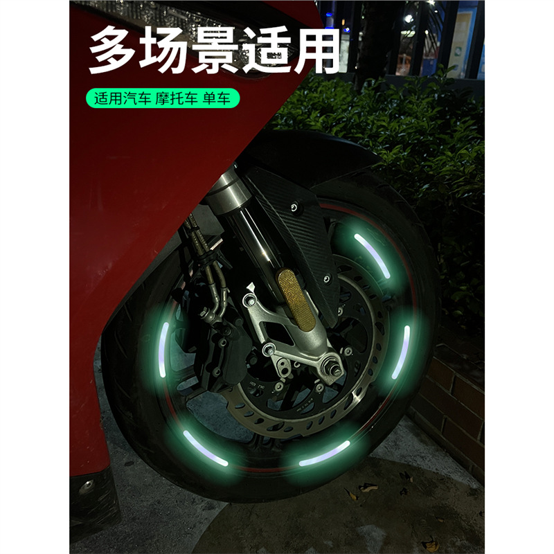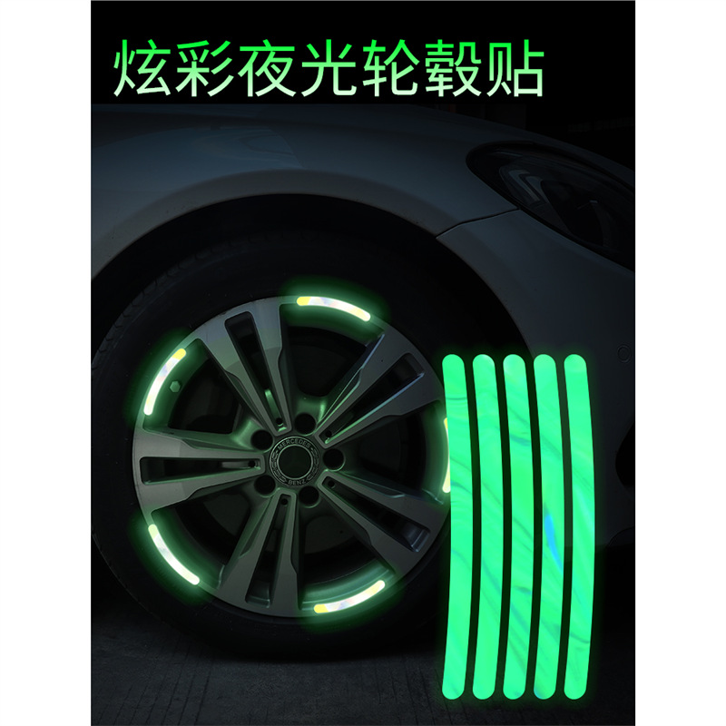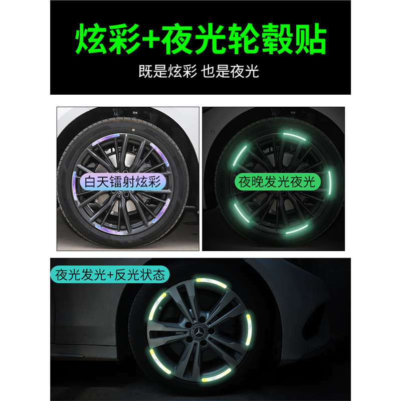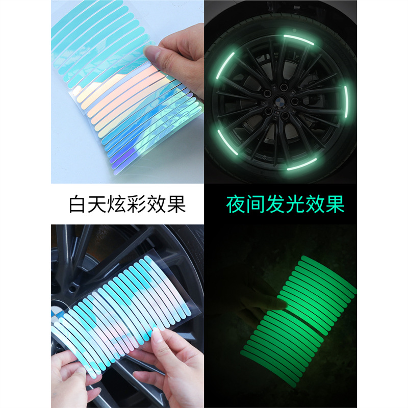 汽车轮毂反光贴个性 饰车贴 创意炫彩轮胎警示贴纸电动车彩虹夜光装