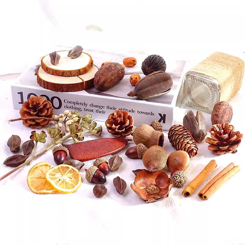 松果木片树叶干花干果组合圣诞diy幼儿园手工干花干果橡果艺术品