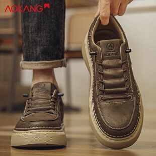 2025新款 真皮软底增高百搭小白潮鞋 秋季 男士 运动休闲板鞋 森马男鞋