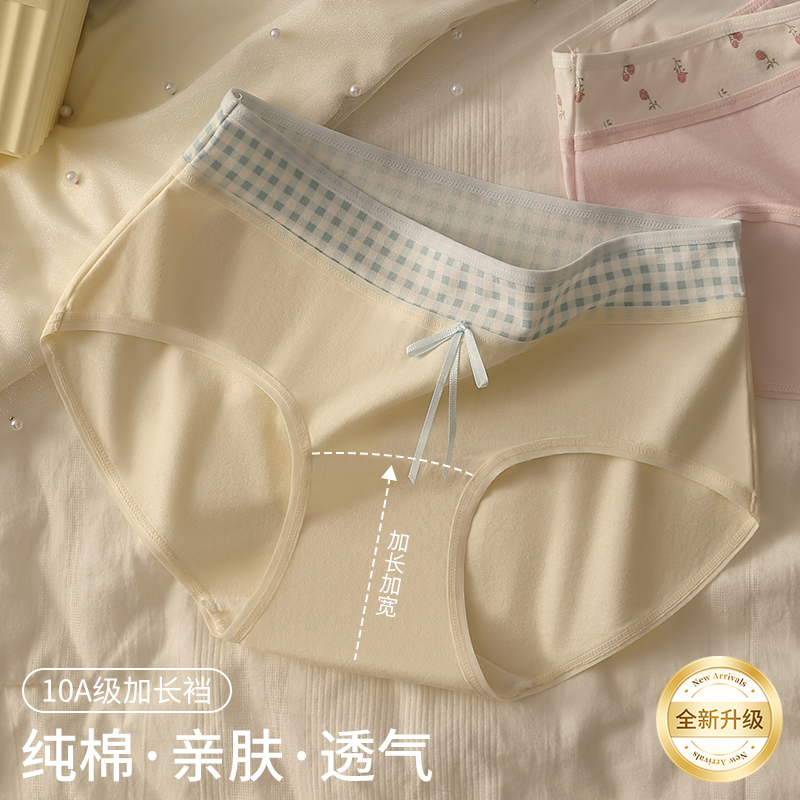 学生 少女网格10A抗菌加长裆中腰撞色包臀底裤 法式 婴儿棉纯棉内裤