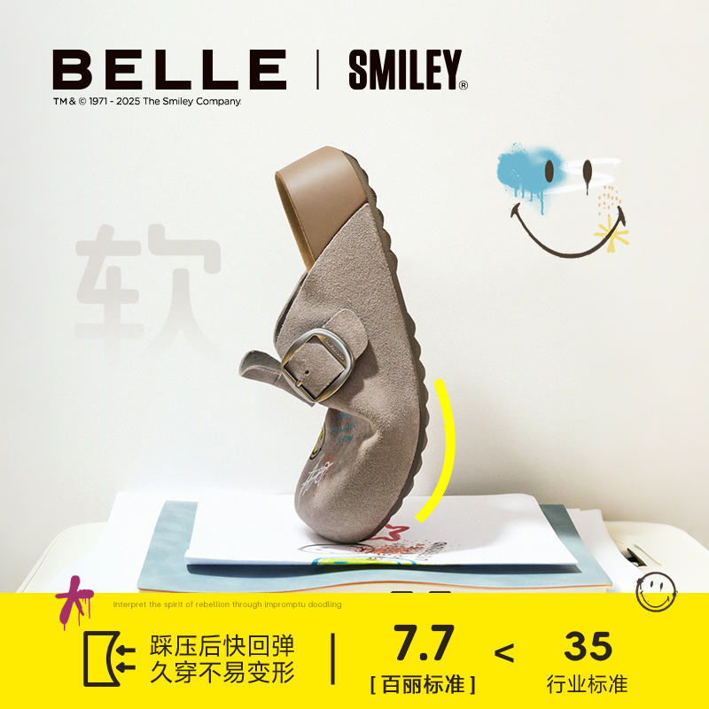 D8R2DCH5 厚底包头鞋 周雨彤同款 百丽SMILEY联名涂鸦流浪吐司勃肯鞋
