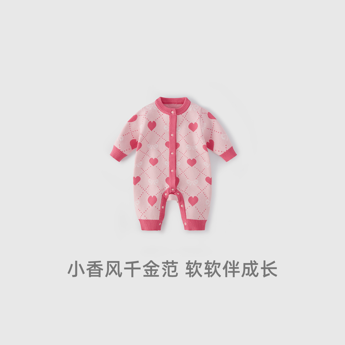 女婴小香风哈衣秋装 纯棉婴儿连体衣秋季 满月宝宝衣服 抗菌远红外