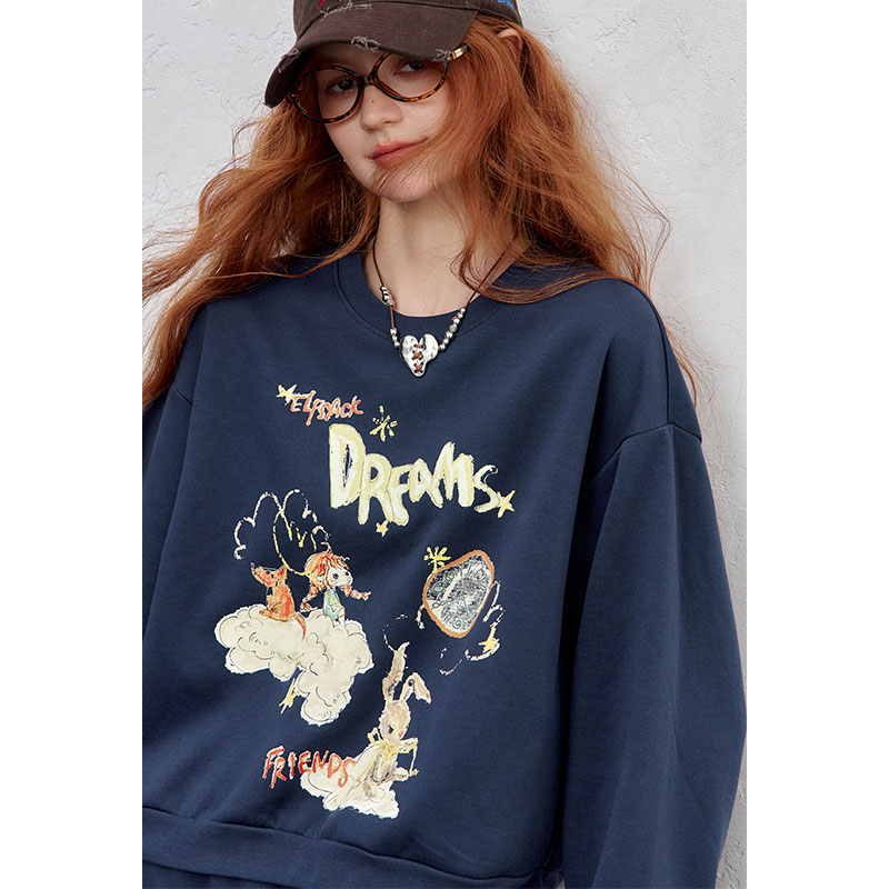 运动休闲时尚 妖精 新款 女2025年秋季 口袋印花卫衣半身裙两件套装