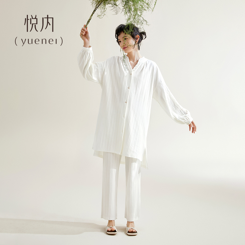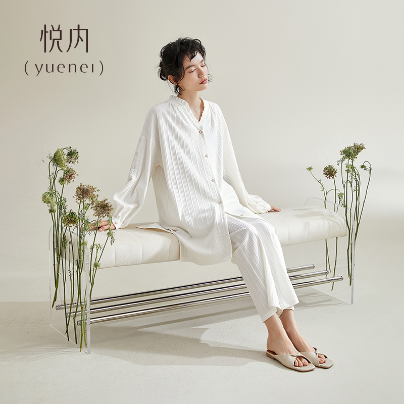 休闲可外穿出门套装 悦内睡衣女士春秋款 家居服加长款 纯棉长袖 秋季