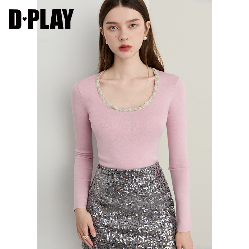 轻奢闪钻系列 女含羊毛长袖 2025秋季 粉色针织衫 上衣 新款 DPLAY
