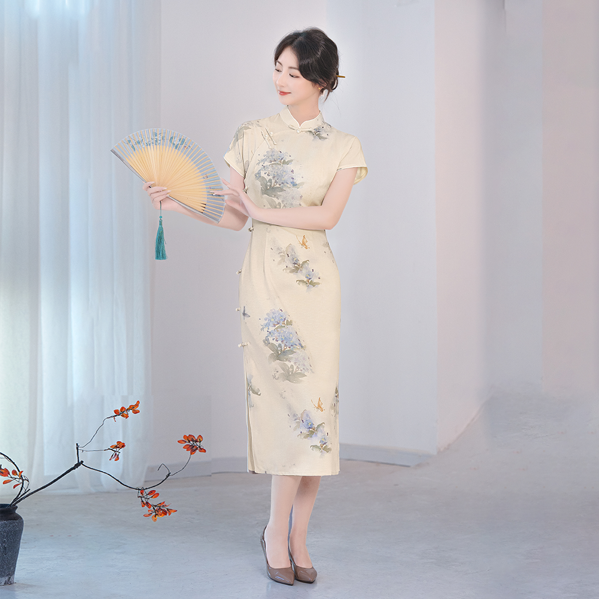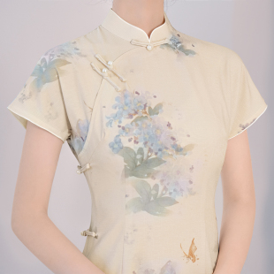 复古连衣裙年轻改良款 九重紫 显气质 素雅国风旗袍 尘记2025新款