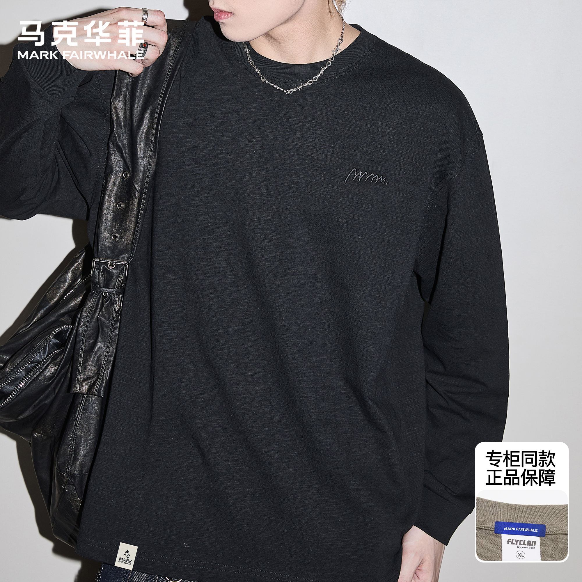 潮牌日系刺绣圆领宽松纯棉百搭体恤衫 马克华菲长袖 t恤男春秋新款