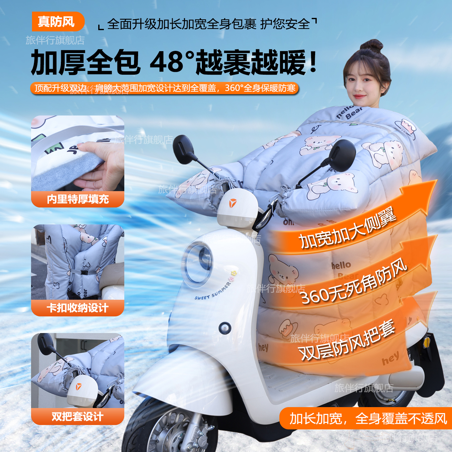 通用 电瓶摩托防风防水罩四季 电动车挡风被冬季 加绒加厚全包斗篷式