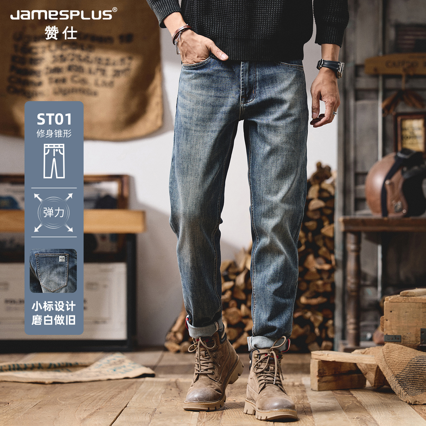 含莫代尔直筒高腰弹力直筒长裤 海澜之家秋季 男士 高端牛仔裤 子 新款