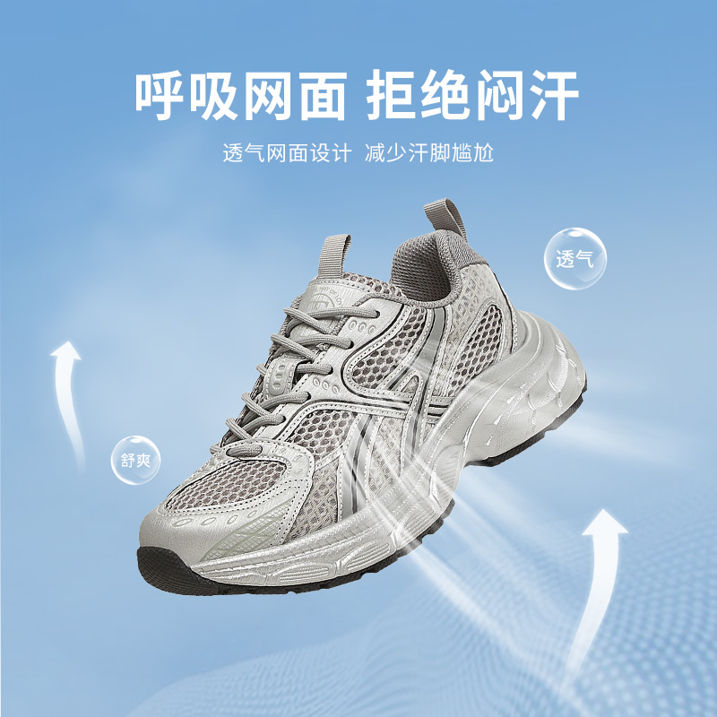 跑步防滑减震增高小白老爹鞋 回力男鞋 男士 透气网面休闲运动鞋 夏季