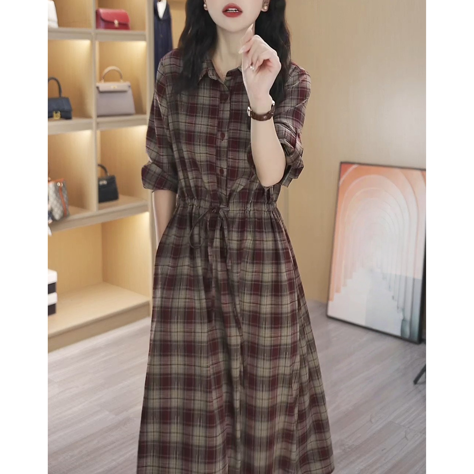 中长款 休闲宽松V领短袖 裙子 纯色收腰显瘦连衣裙女时尚 2025夏新款