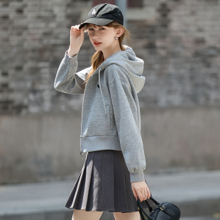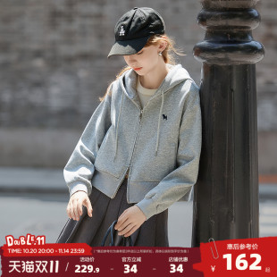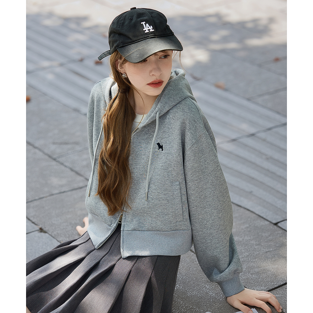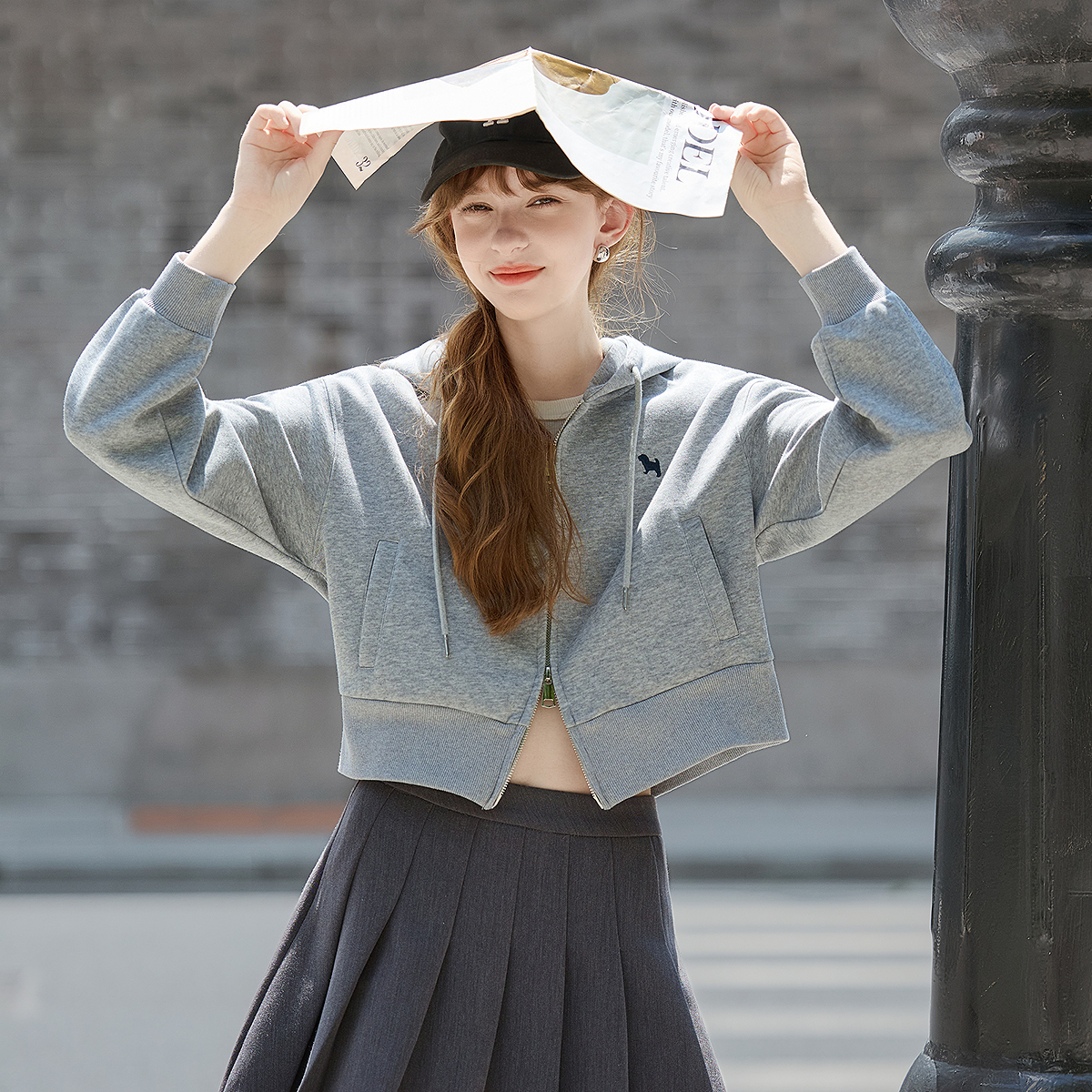 拉链开衫 yoe2025年秋季 短款 连帽卫衣女灰色休闲运动美式 外套 新款