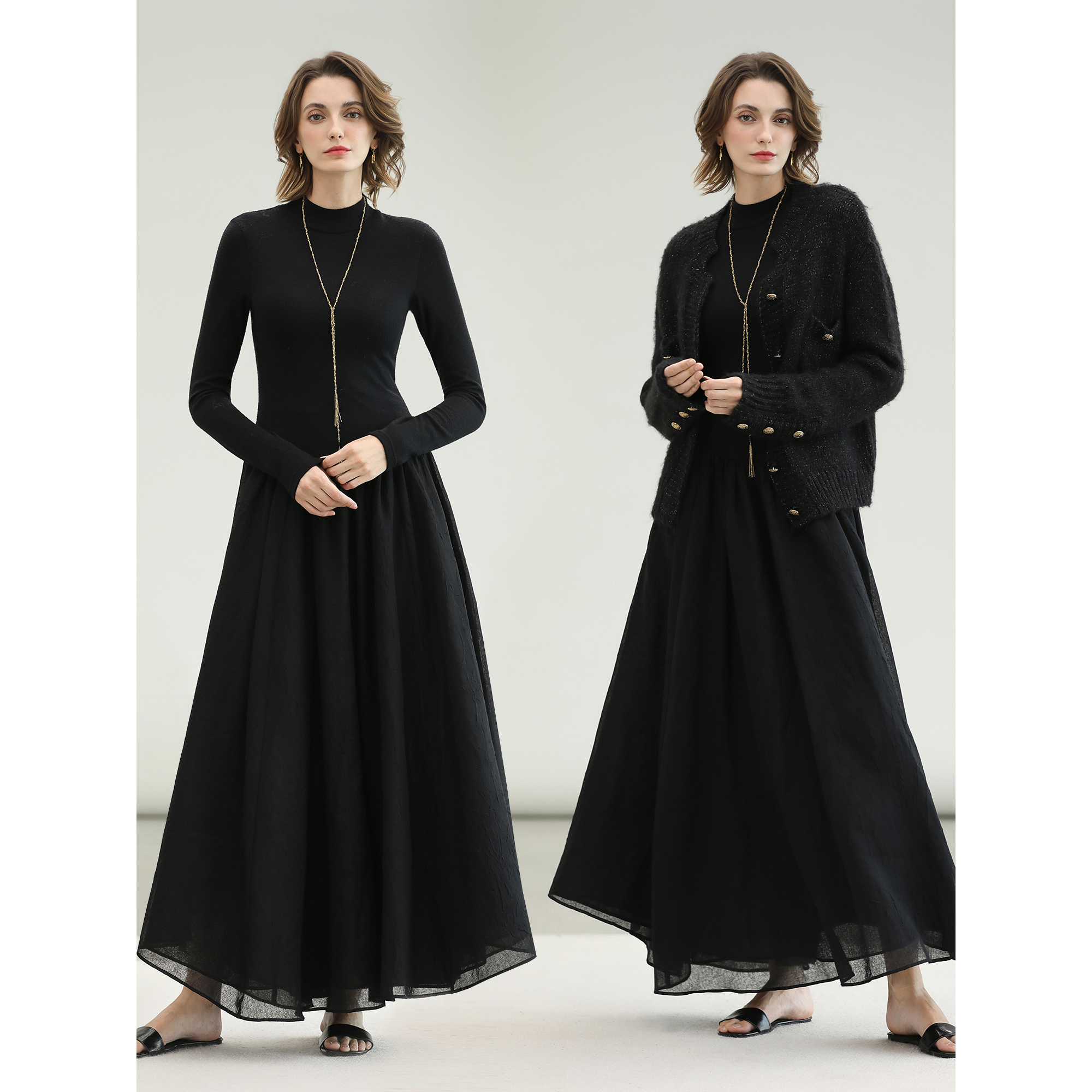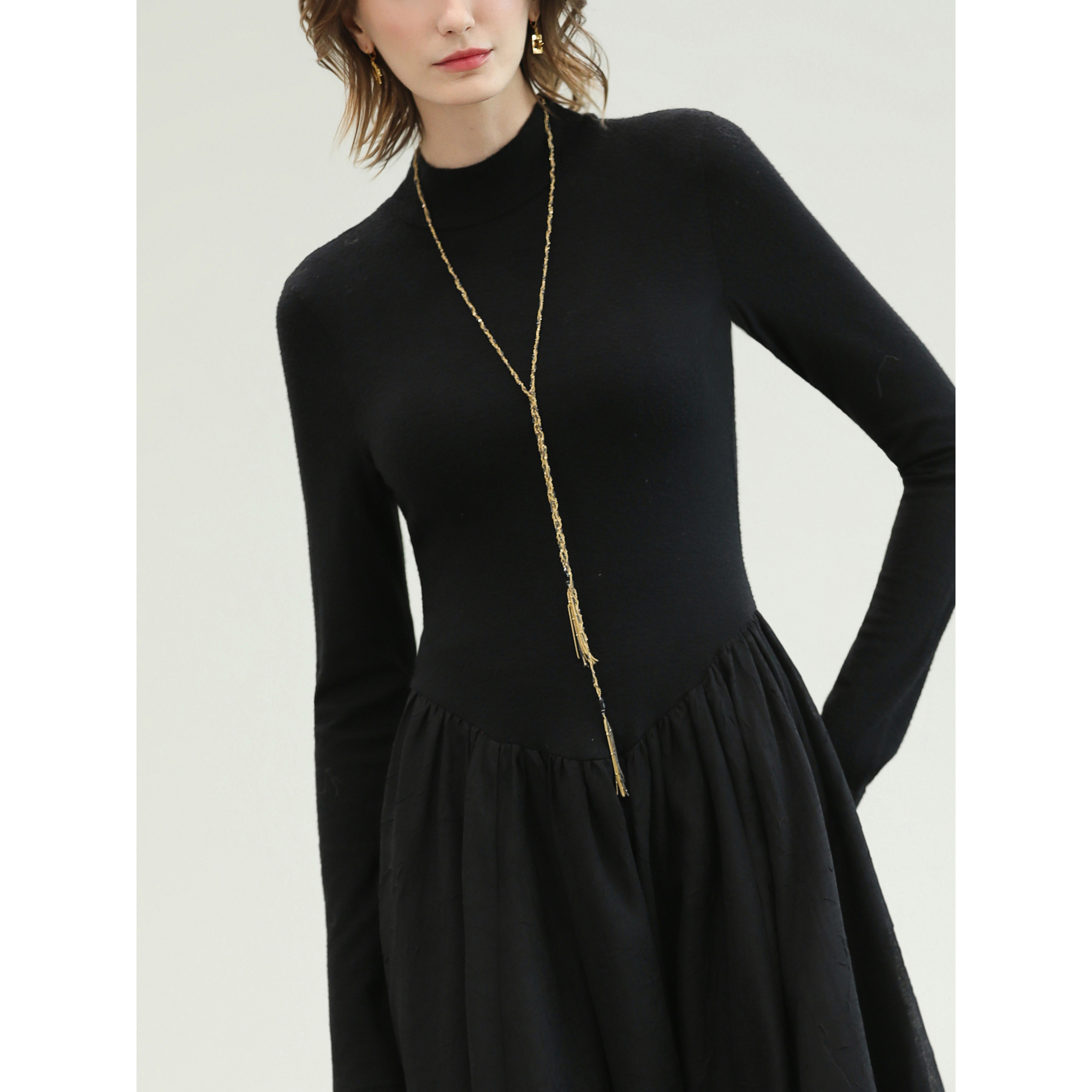 COCOBELLA赫本风针织拼接连衣裙小黑裙大摆长裙FR0008 双11预售