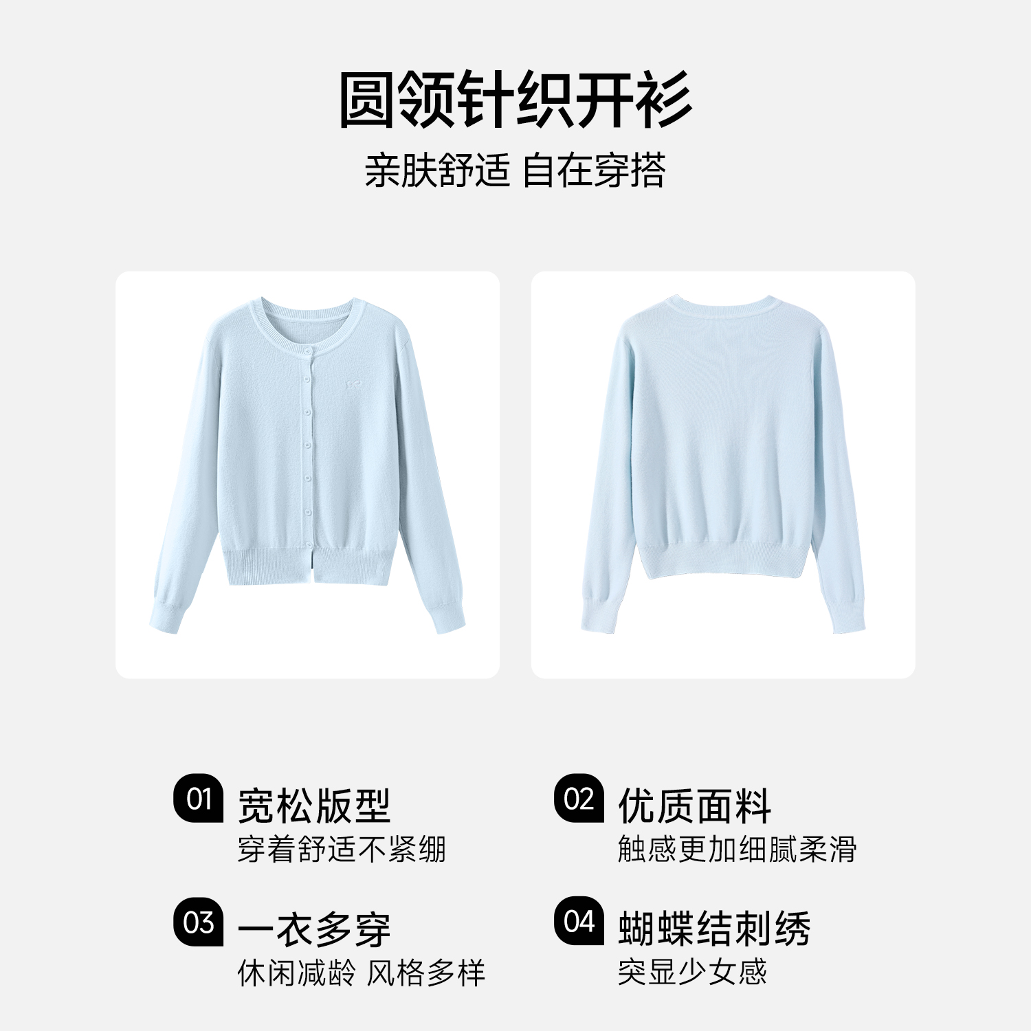商场同款 2025新款 森马针织开衫 春季 基础圆领上衣 女短款 森柔毛衫