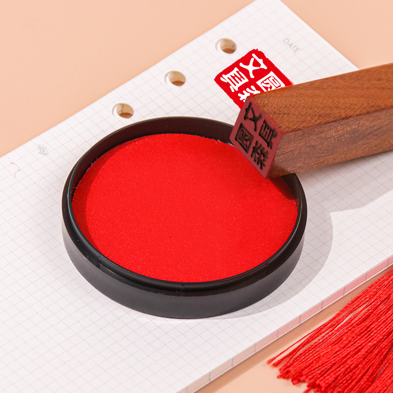 秒干速干适用红色圆形印油财会用品印泥盒 快干秒干印泥办公用品印台财务便携式 高档红色印台 油性