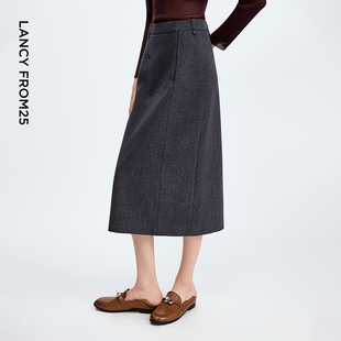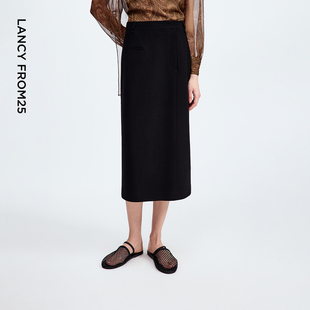 新款 朗姿直筒复古风黑色西装 半身裙高级感气质通勤半裙2025年秋季