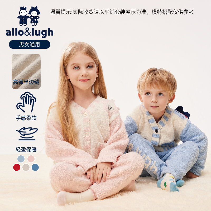 男童女童保暖家居服套装 阿路和如睡衣2025秋冬儿童装 半边绒
