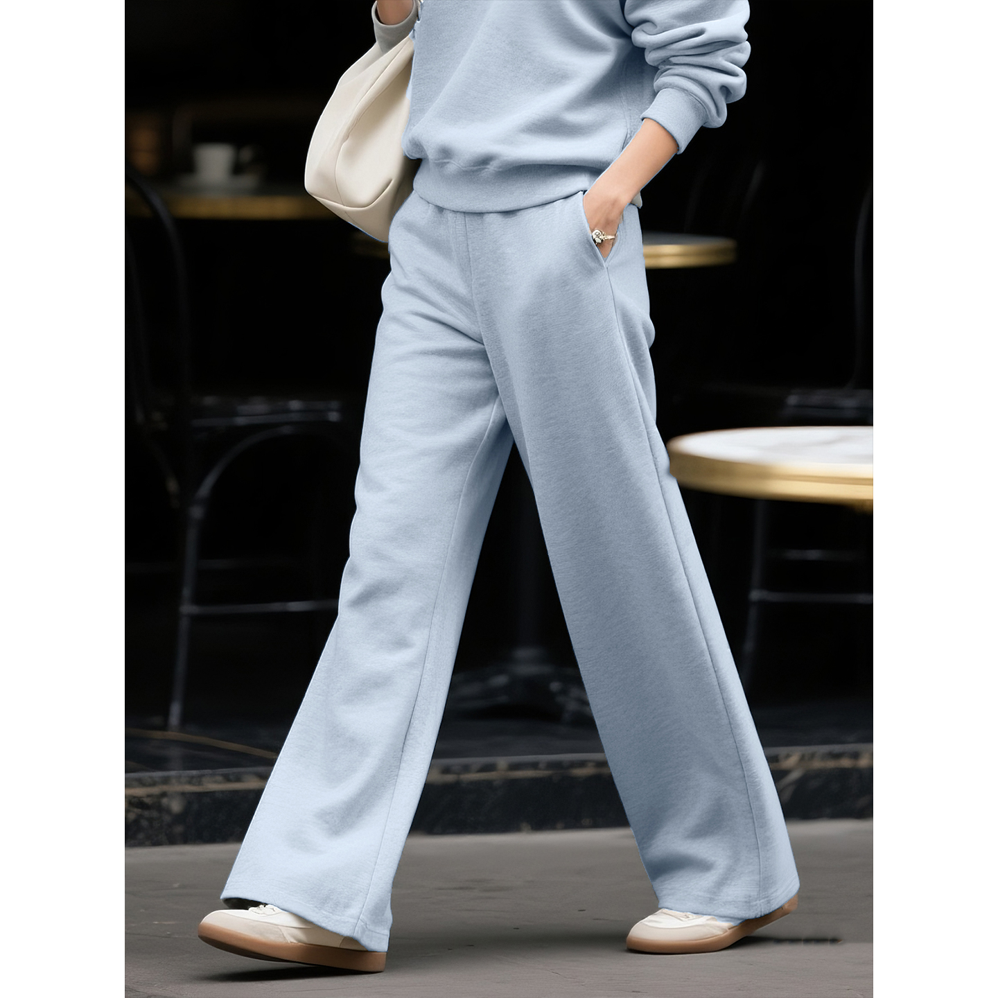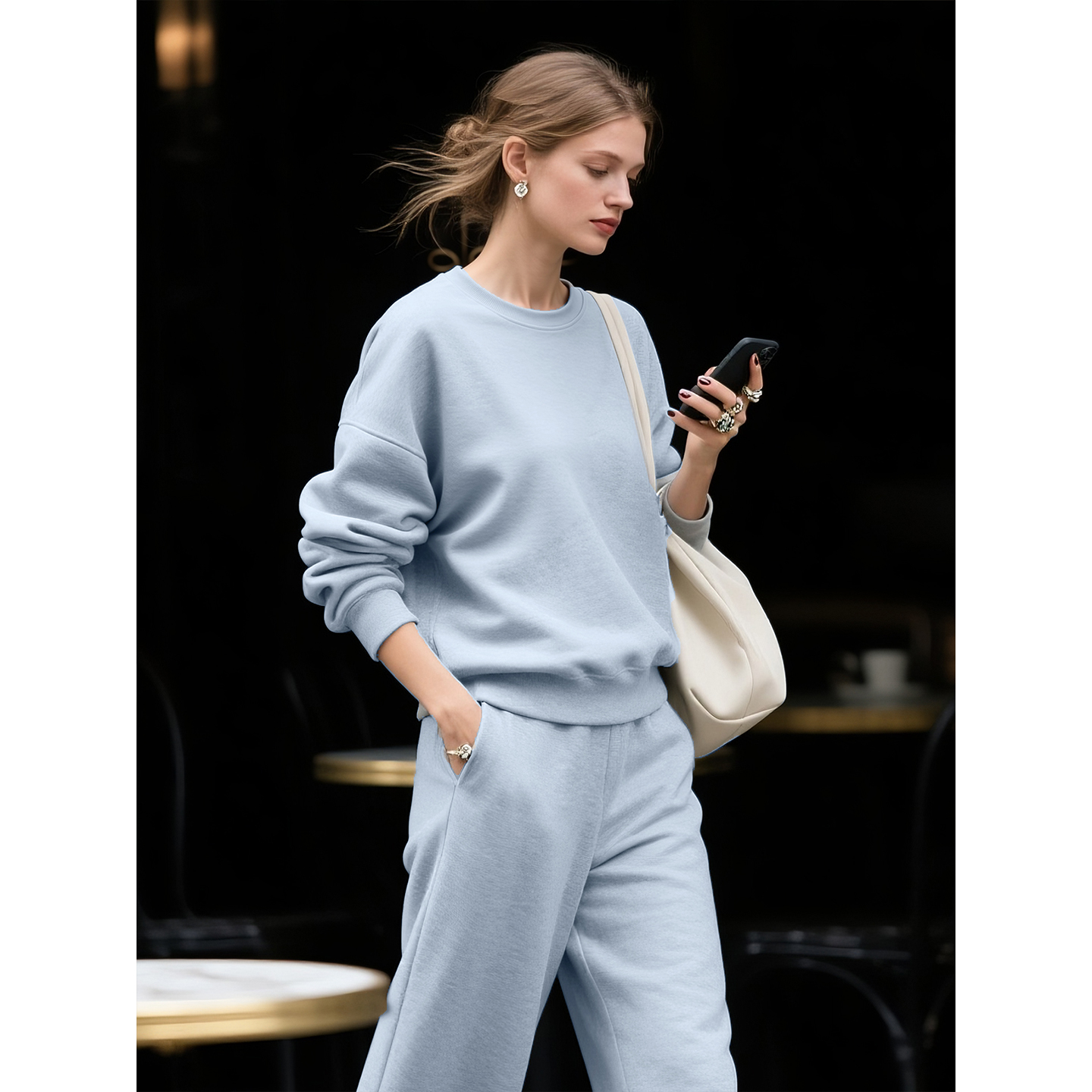 圆领卫衣宽松阔腿裤 新款 两件套 女2025年秋季 浅蓝色早秋休闲套装