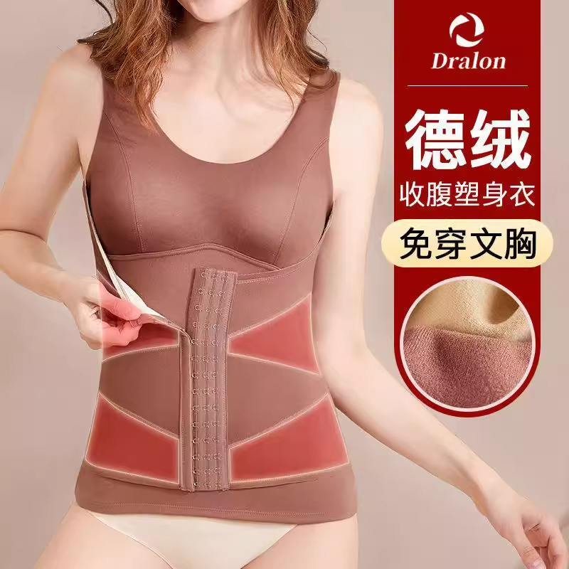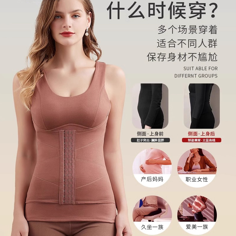德绒无痕塑身保暖背心女带胸垫塑型修身 排扣收腹打底加厚内衣文胸