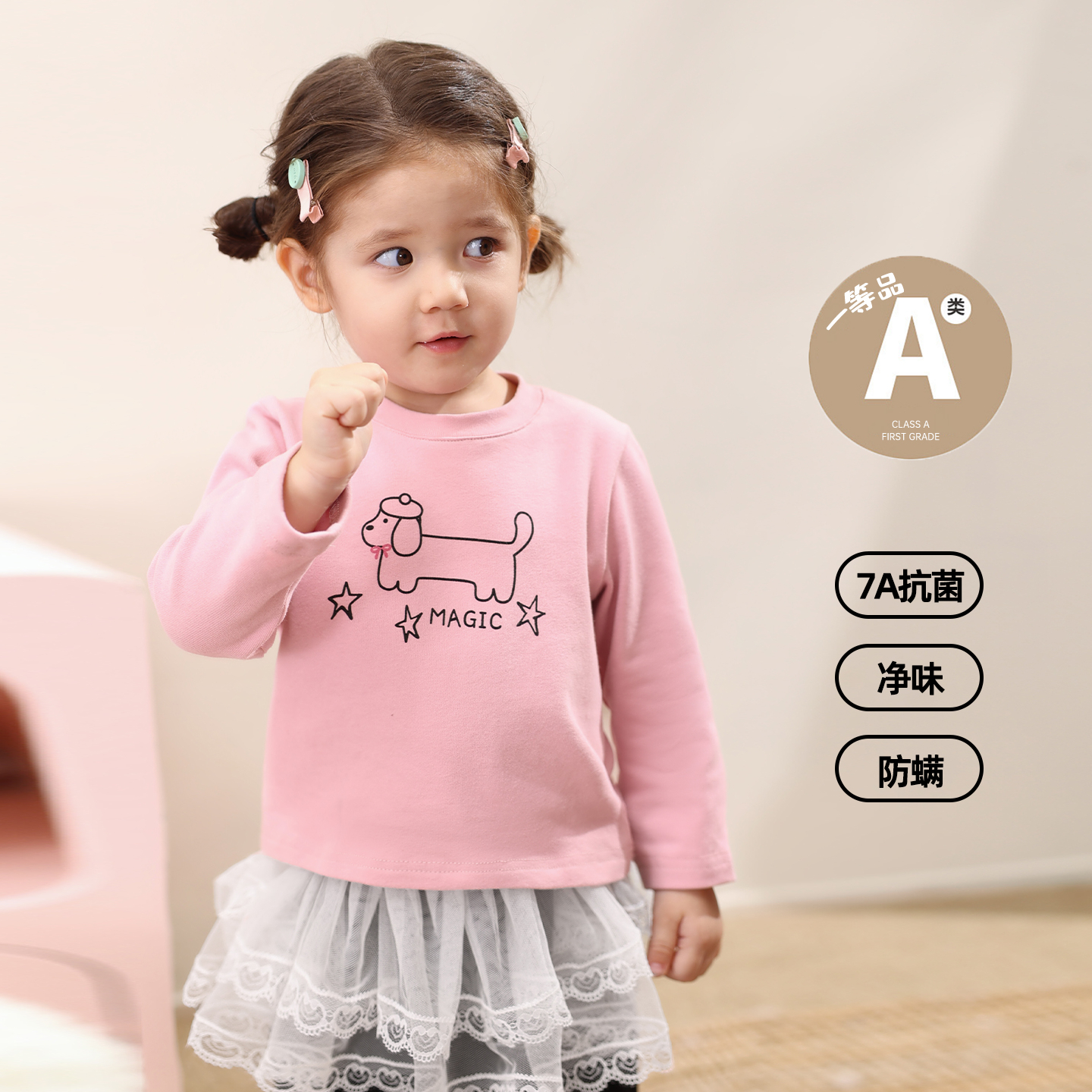 女宝宝早秋上衣洋气儿童衣服童装 T恤2025春秋新款 长袖 女童打底衫