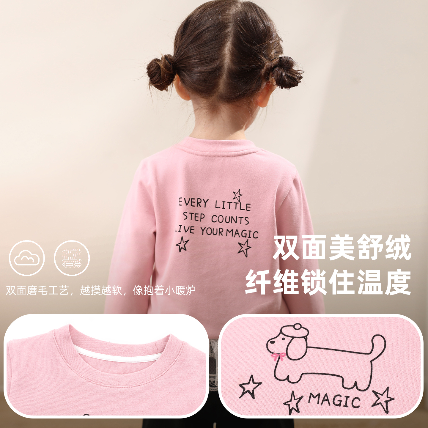 抑菌百搭上衣白T恤长袖 全棉磨毛打底衫 男女童 秋冬新款 MUCMUKN童装
