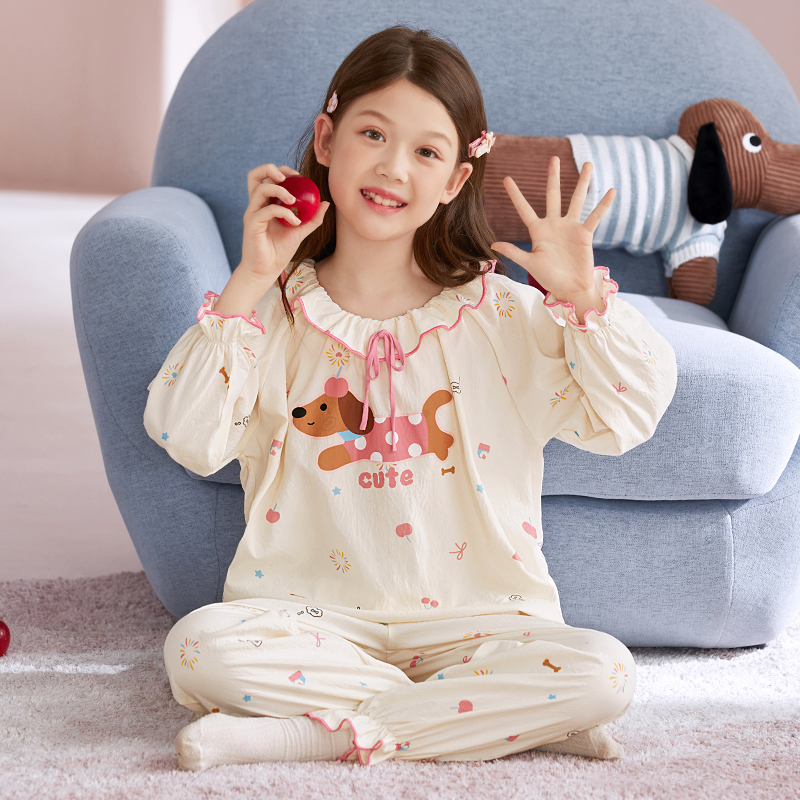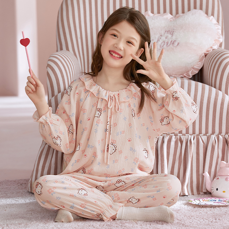 春秋季 新款 中大童儿童家居服 2025薄款 拉布布女童甜美睡衣女孩长袖