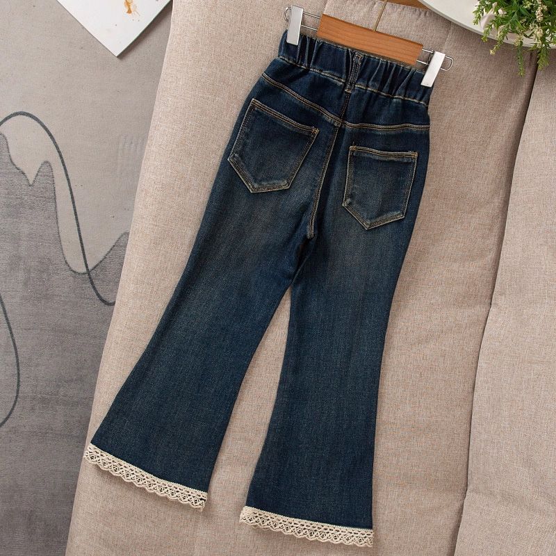 中大童花边微喇裤 女童喇叭裤 春秋款 儿童牛仔裤 子休闲 弹力显瘦童装