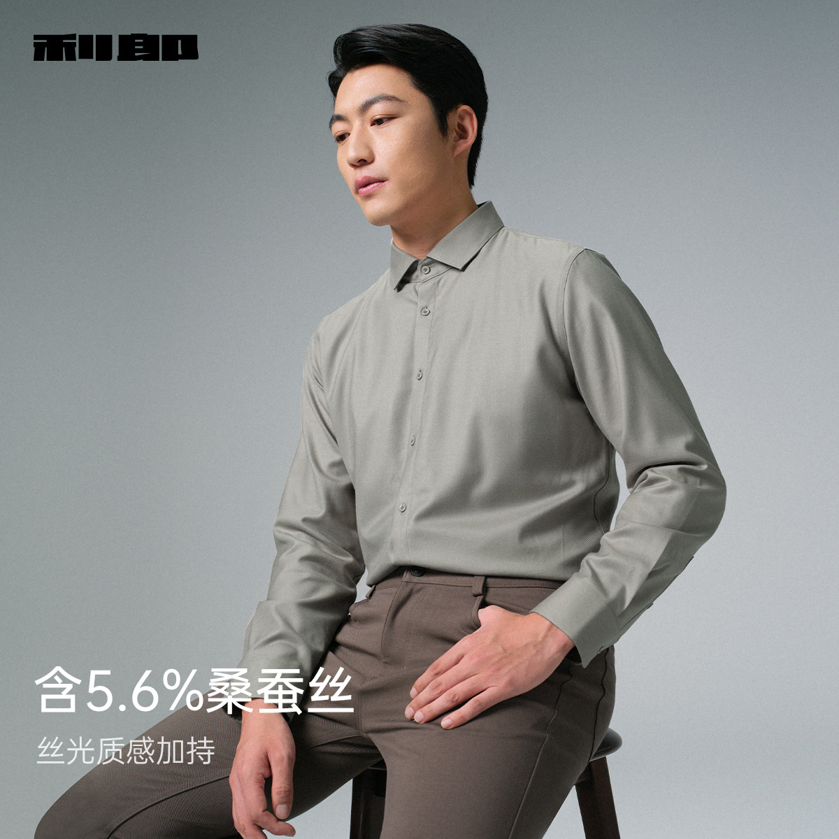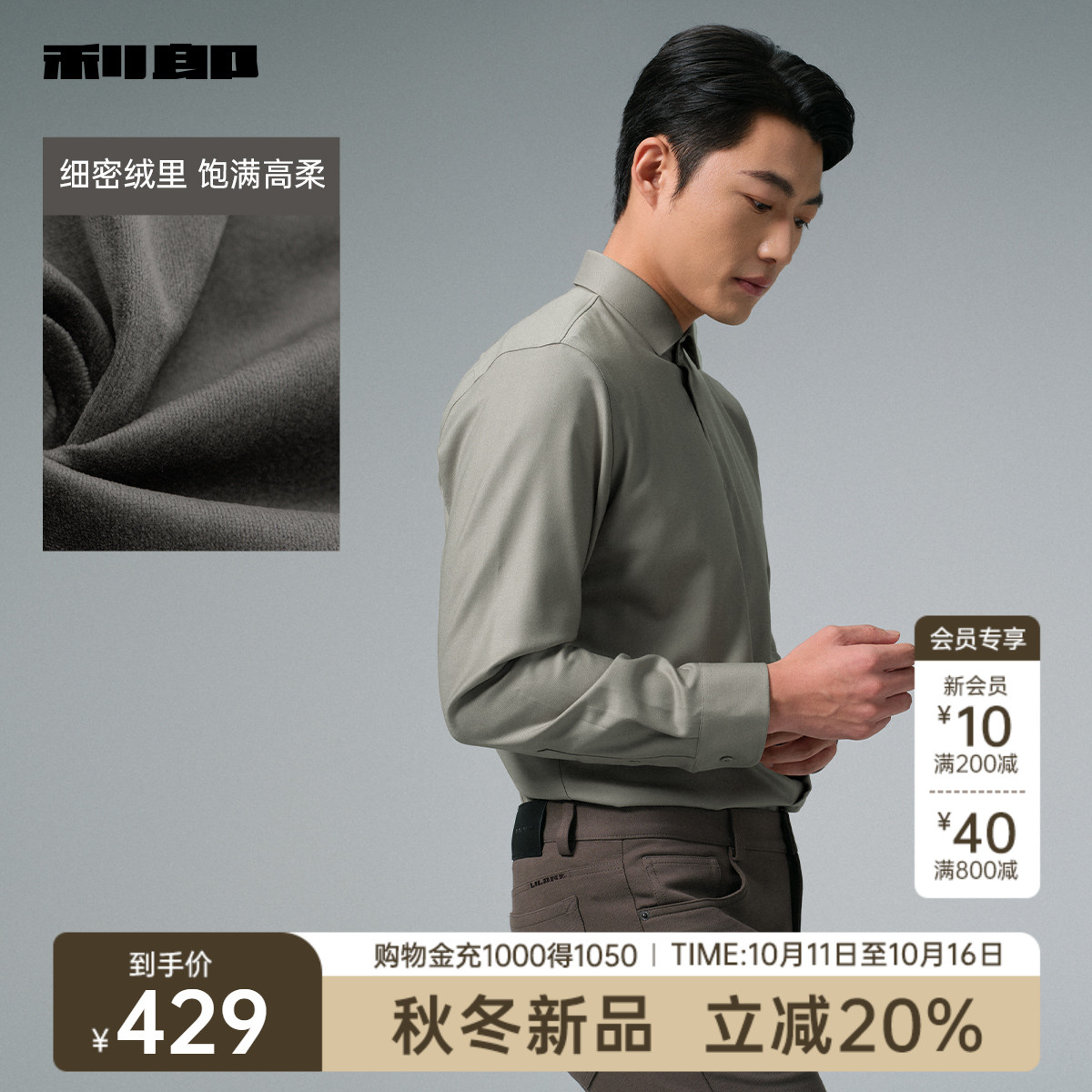 利郎官方 内里加绒长袖 衬衫 2025冬季 绵羊毛 男士 保暖衬衣 抗菌