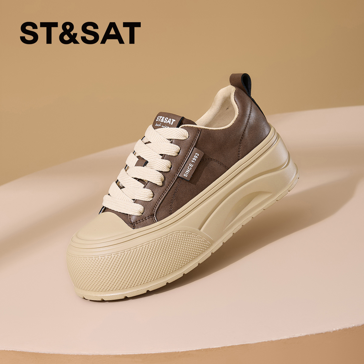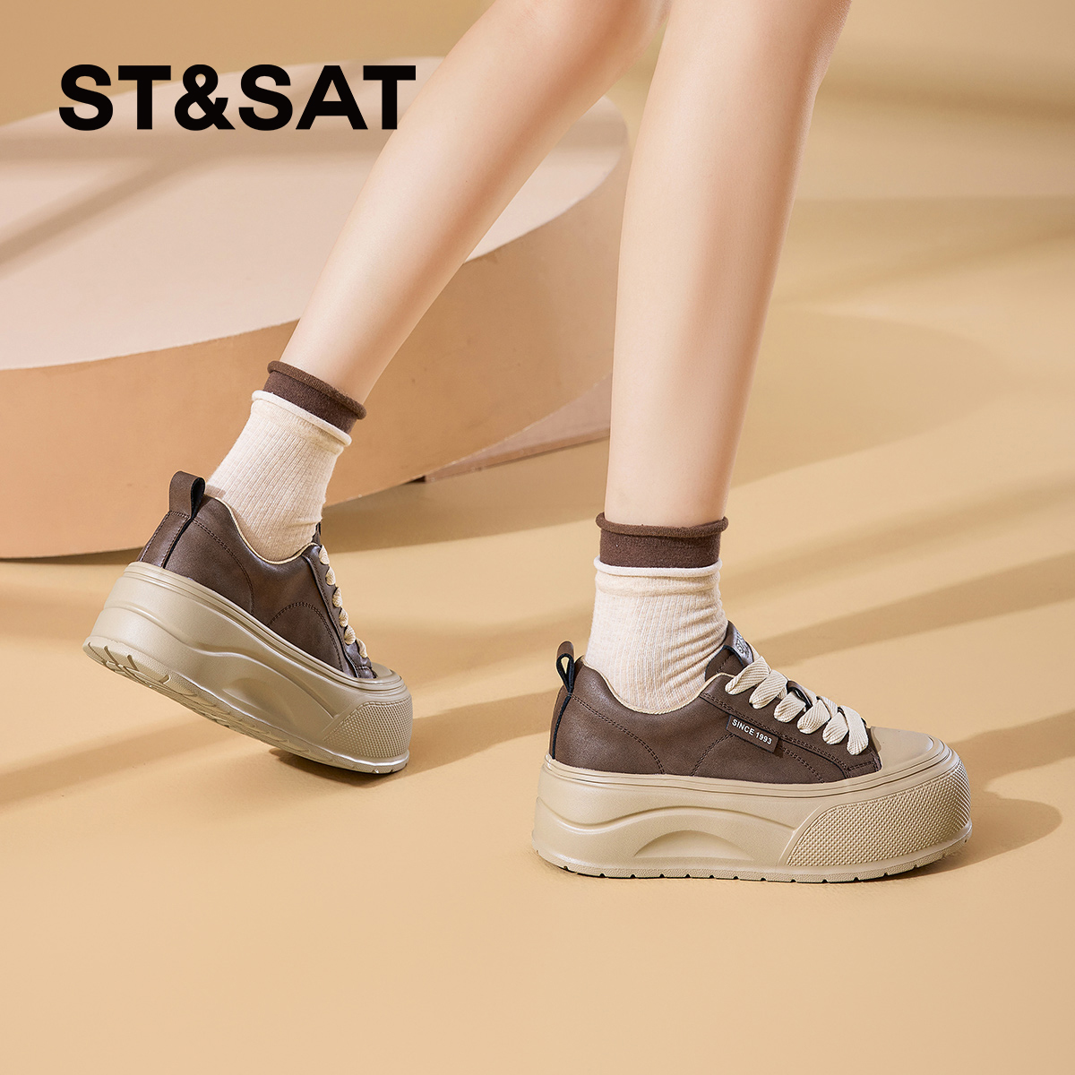 厚底增高女鞋 星期六复古休闲板鞋 舒适百搭面包鞋 新款 子 女2025秋季
