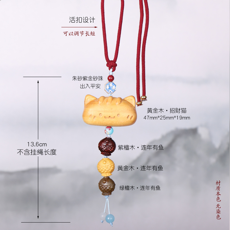 可爱小猫汽车挂件车内吊饰小鱼车载挂饰2025新款 真朱砂珠出入平安