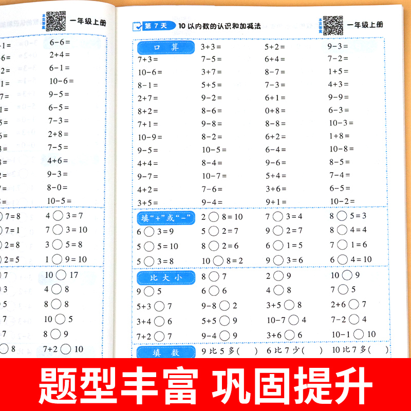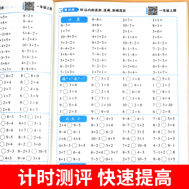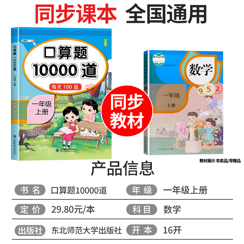 一年级口算天天练配套人教版 小学1年级上册数学思维训练题口算题卡10000道同步练习册卡片20以内加减法专项练习题每日一练上下册K