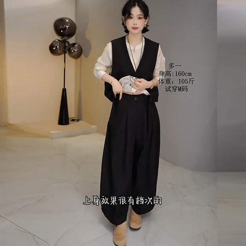 衬衣 秋装 套装 裤 高腰西装 国风立领长袖 马甲 西装 三件套女大码 时尚