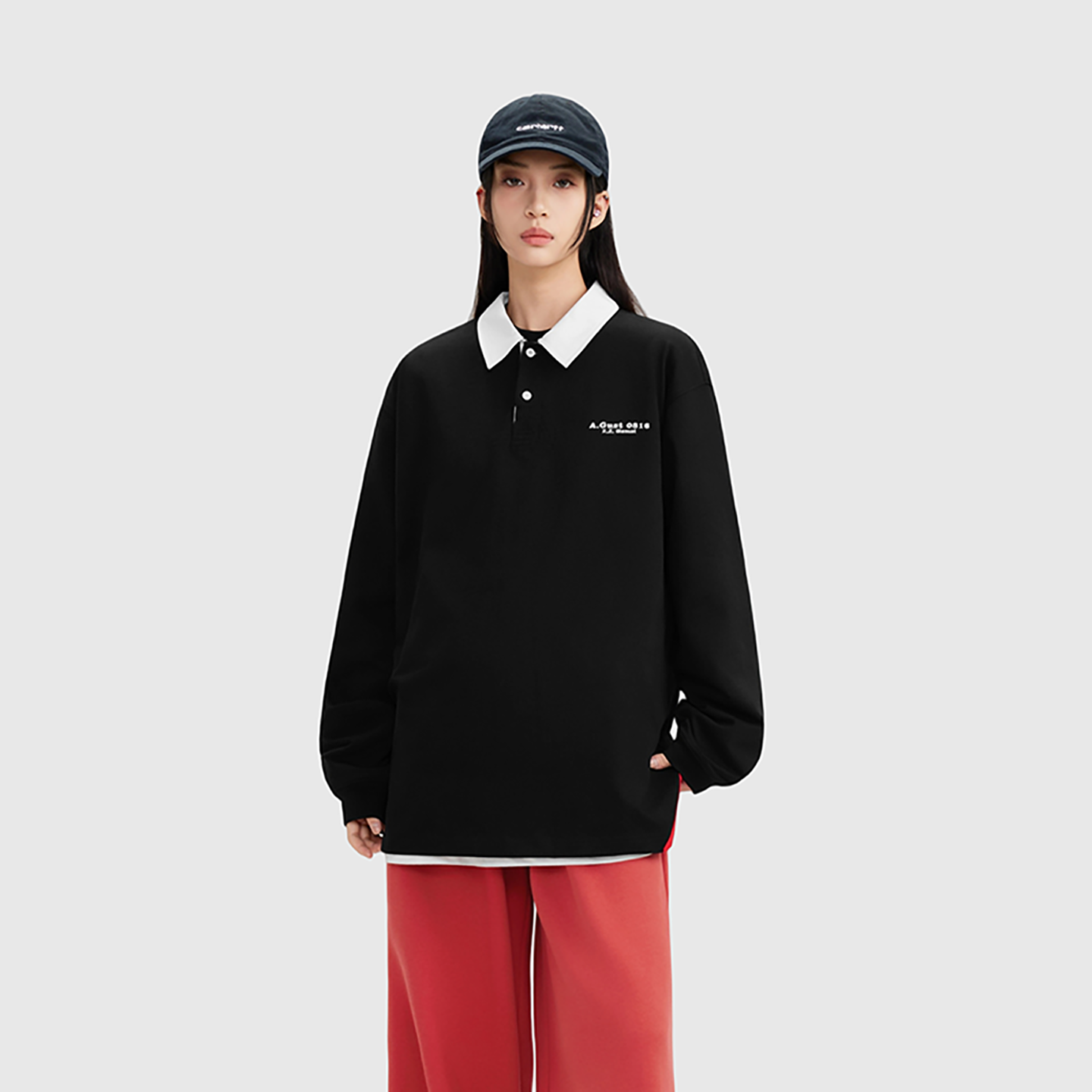 新款 男25年秋季 抑菌棉商务休闲弹力翻领T恤 POLO衫 红豆长袖